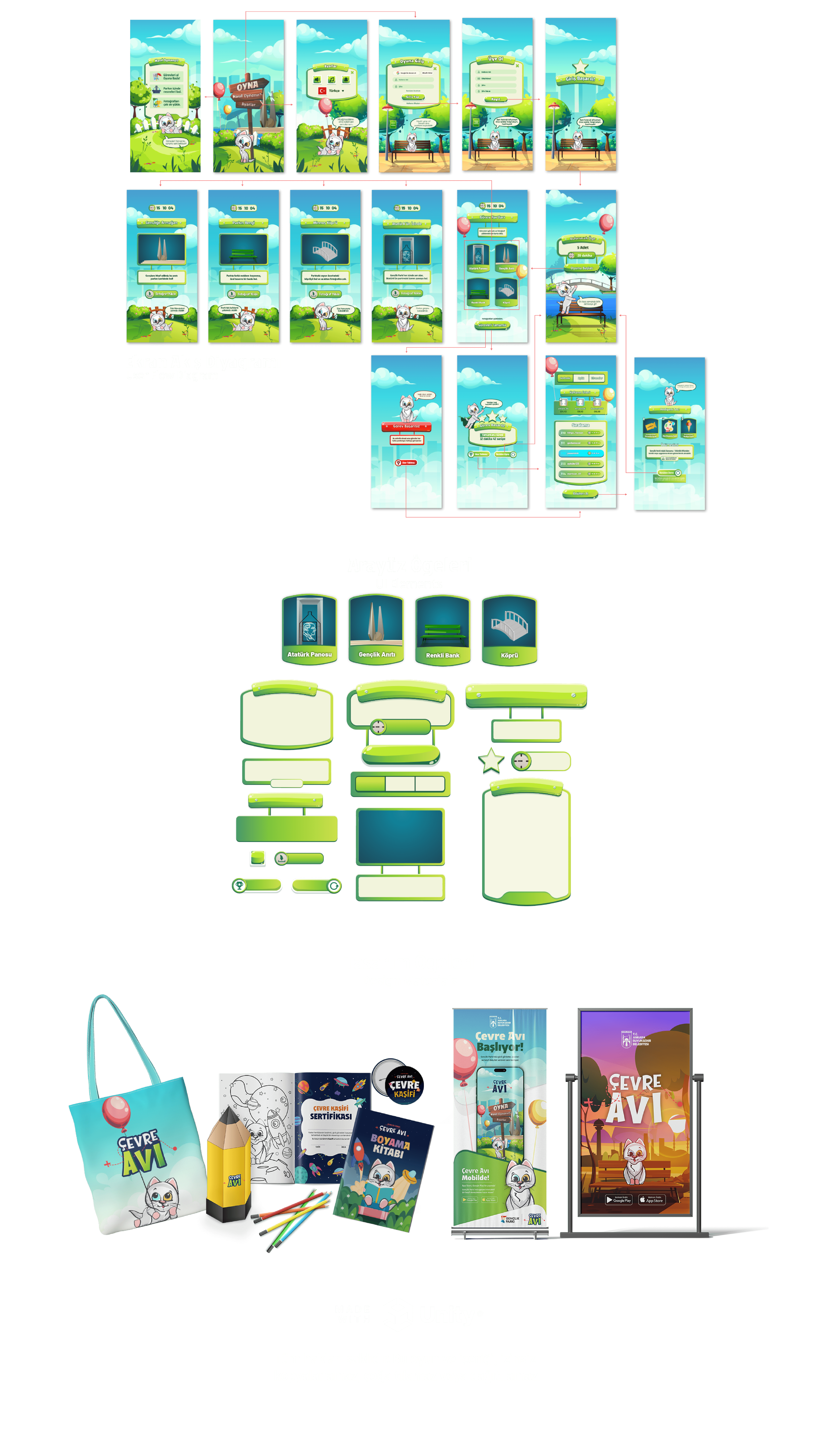 Farklı materyaller ve kullanım alanları için ürettiğim tasarımlar, yalnızca dijitalde değil, gündelik hayatta da yer bulmayı hedefliyor. Boyama kitaplarından kalemlik yüzeylerine, açık hava mecralarından fiziksel objelere kadar uzanan bu işler; grafik tasarımın farklı disiplinlere nasıl adapte olabileceğini gösteriyor. Her bir öğe, hem estetik hem işlevsel bakış açısıyla, üretilebilirlik göz önünde bulundurularak tasarlandı.